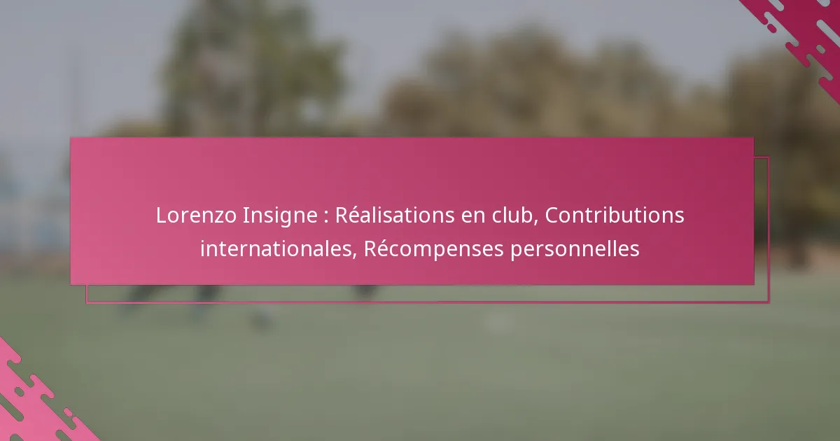 Lorenzo Insigne s’est imposé comme une figure clé du football, notamment durant son passage à Naples, où il a remporté de nombreux titres de club et distinctions personnelles. Ses contributions à l’équipe nationale italienne soulignent encore son importance dans le sport, mettant en avant son talent et son leadership lors de matchs cruciaux. La collection impressionnante de récompenses personnelles d’Insigne met en lumière son talent exceptionnel en tant qu’attaquant et son impact significatif tant au niveau des clubs qu’international. Key…